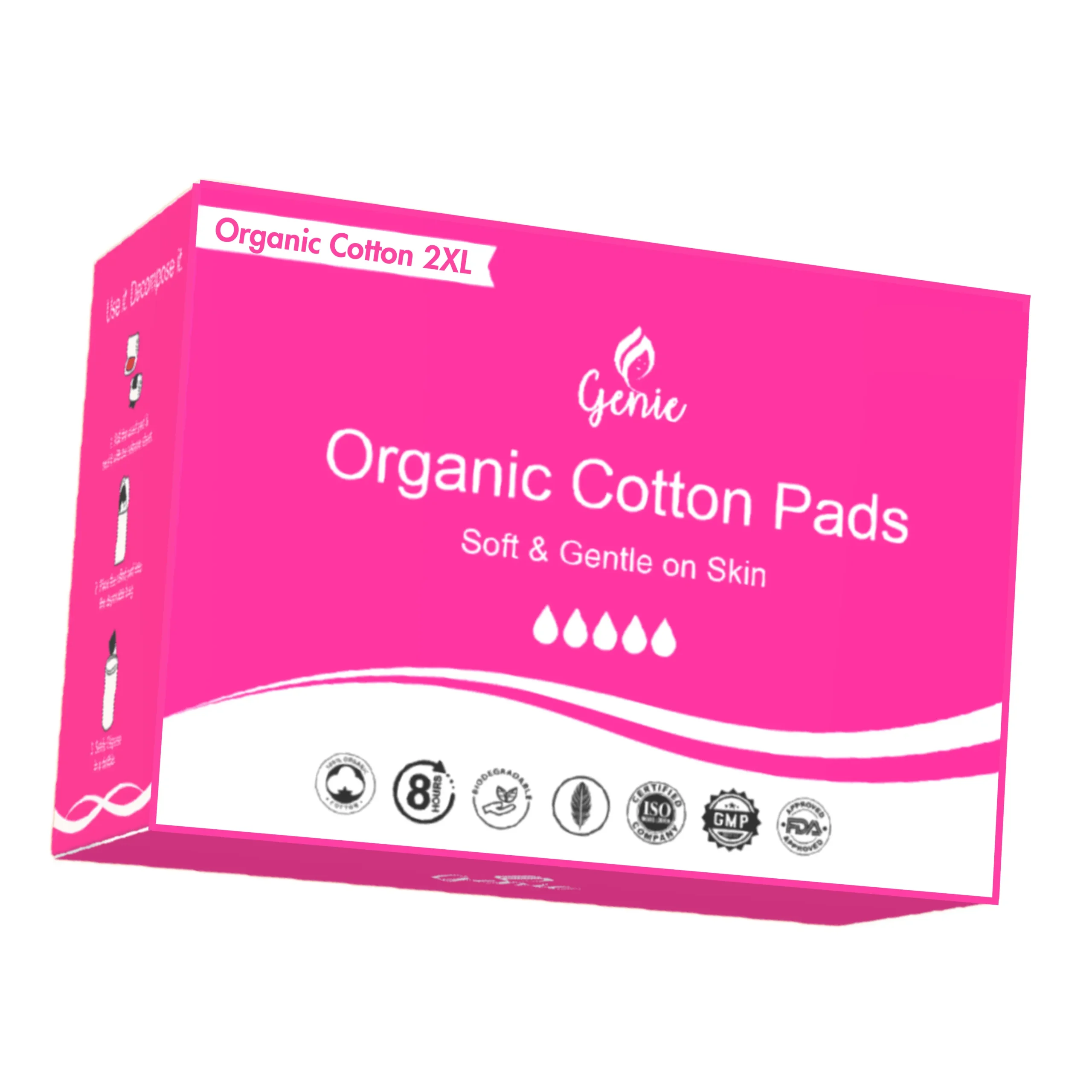 Genie Organic Cotton Sanitary Pads | 2XL | 30 Pads | Ultra-Soft & Biodegradable | Rash-Free & Leakage-Free