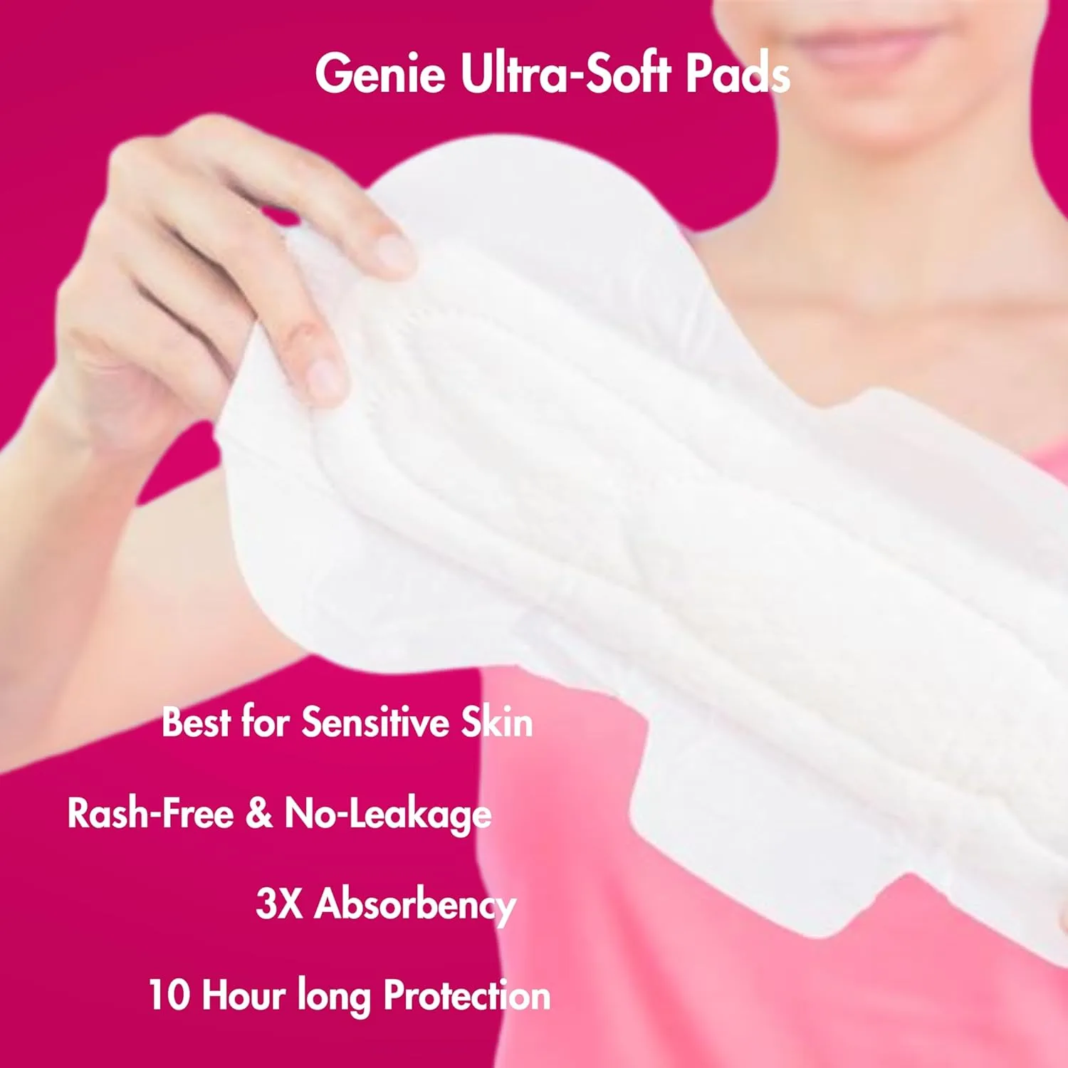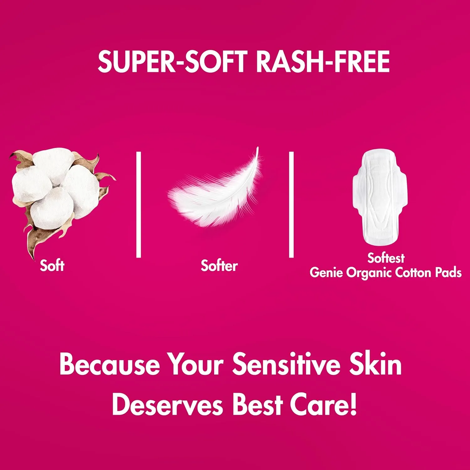 Genie Organic Cotton Sanitary Pads | XL | 24 Pads | Ultra-Soft & Biodegradable | Rash-Free & Leakage-Free